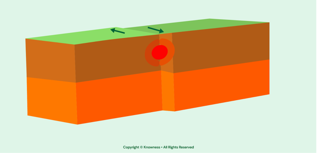 At constructive plate margins, two plates move away from each other, creating a gap. This movement occurs along mid-ocean ridges or rift valleys. As the plates separate, magma from the Earth’s mantle rises to fill the gap. When this magma cools and solidifies, it forms new rock, creating new oceanic crust. This process can result in volcanic activity along the mid-ocean ridges and the formation of volcanic islands and shield volcanoes. Earthquakes at constructive plate margins are generally less powerful and occur due to the fracturing of the crust as it pulls apart.