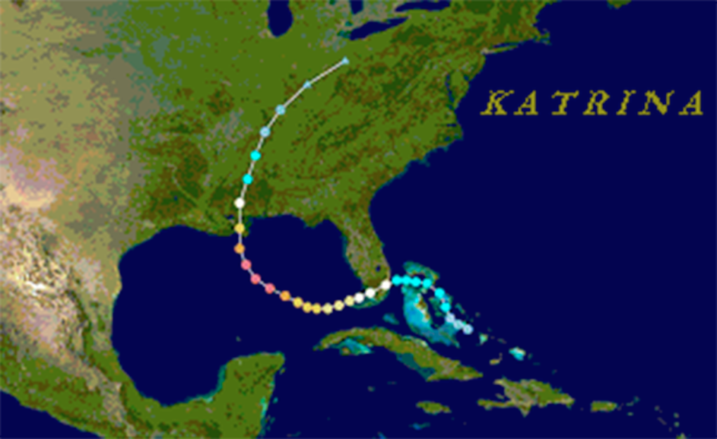 In August 2005, Hurricane Katrina struck the Gulf Coast of the United States, resulting in catastrophic damage. It hit the USA with a Saffir Sampson category 3.