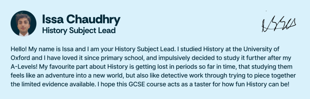 Throughout this course, you’ll find engaging lessons that cover all the key periods and themes required for your exams, helping you build a strong foundation in historical knowledge and critical thinkingThe ability to effectively analyse and evaluate arguments..